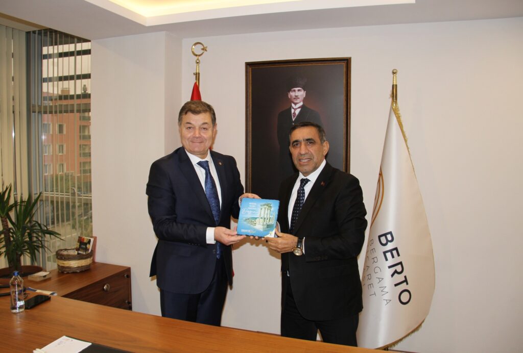 Bergama’nın konuşulduğu ziyarette İlçe Başkanı Sebahattin Güzel, İlçe Yönetimi ve faaliyetler hakkında bilgiler paylaşırken, BERTO Başkanı Kolat’a da bir plaket takdim etti. BERTO Başkanı Kolat, hem nazik ziyaretleri hem de hediyeleri için Başkan Güzel ve İlçe Teşkilatı’na teşekkür etti.
