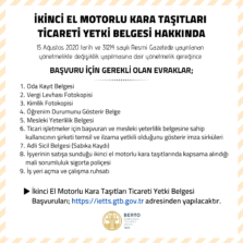 İKİNCİ EL MOTORLU KARA TAŞITLARI TİCARETİ YETKİ BELGESİ HAKKINDA