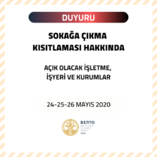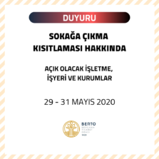 SOKAĞA ÇIKMA KISITLAMASI (29 – 31 MAYIS 2020)