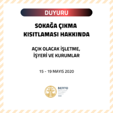 SOKAĞA ÇIKMA KISITLAMASI HAKKINDA (15-19 MAYIS 2020)