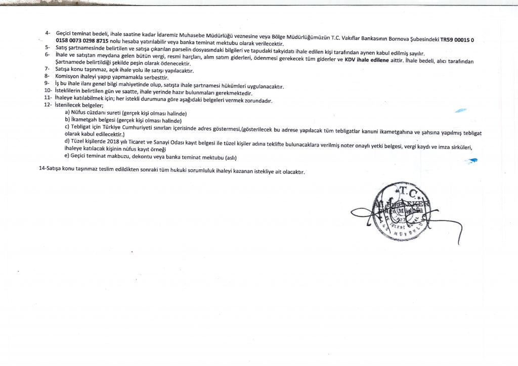 06-07 Kasım 2018 tarihinde açık teklif ihale usulü ile satılacaktır.
