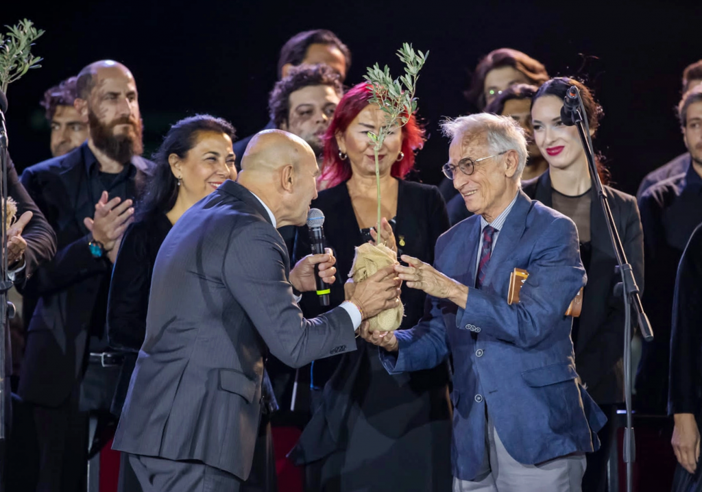 Bergama Ticaret Odası Yönetim Kurulu Başkanı Fikret Ürper‘in de katıldığı gecede, tüm dünyada seslendirilebilmesi için çok sesli olarak bestelenen eser, Ahmed Adnan Saygun Senfoni Orkestrası ve Korosu eşliğinde seslendirilirken sunumu da ünlü oyuncu Hakan Gerçek tarafından yapıldı. 65 orkestra sanatçısı, 57 koro sanatçısı ve 4 solistin yer aldığı prömiyerde konuşan İBB Başkanı Tunç Soyer; “Hikayenin başından beri öncülük eden Bergama’nın önceki dönem belediye başkanı Sefa Taşkın‘ı, bu yolculuğu başlattığı için tebrik ediyorum. Sunağımız, anasından ayrılmış bir çocuk ve biz onu geri istiyoruz. Ana kucağına, ana yurduna dönsün istiyoruz. Zeus Sunağı’nın yeri Bergama’dır” dedi.