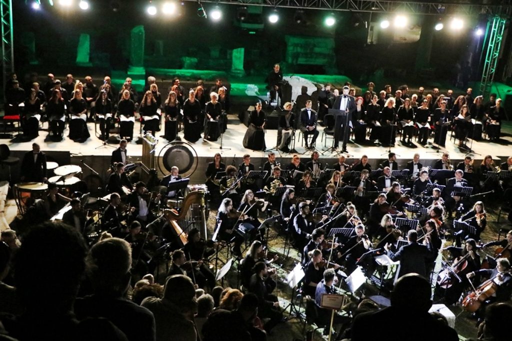 Yıllar önce Bergama’dan yurt dışına götürülen Zeus Sunağı’nın Bergama’ya getirilmesi ve dünya genelinde dikkat çekip, kamuoyu oluşturulabilmesi için bestelenen Bergama Oratoryosu “Sunağın Gözyaşları” eserinin dünya prömiyeri Asklepion’da yapıldı.